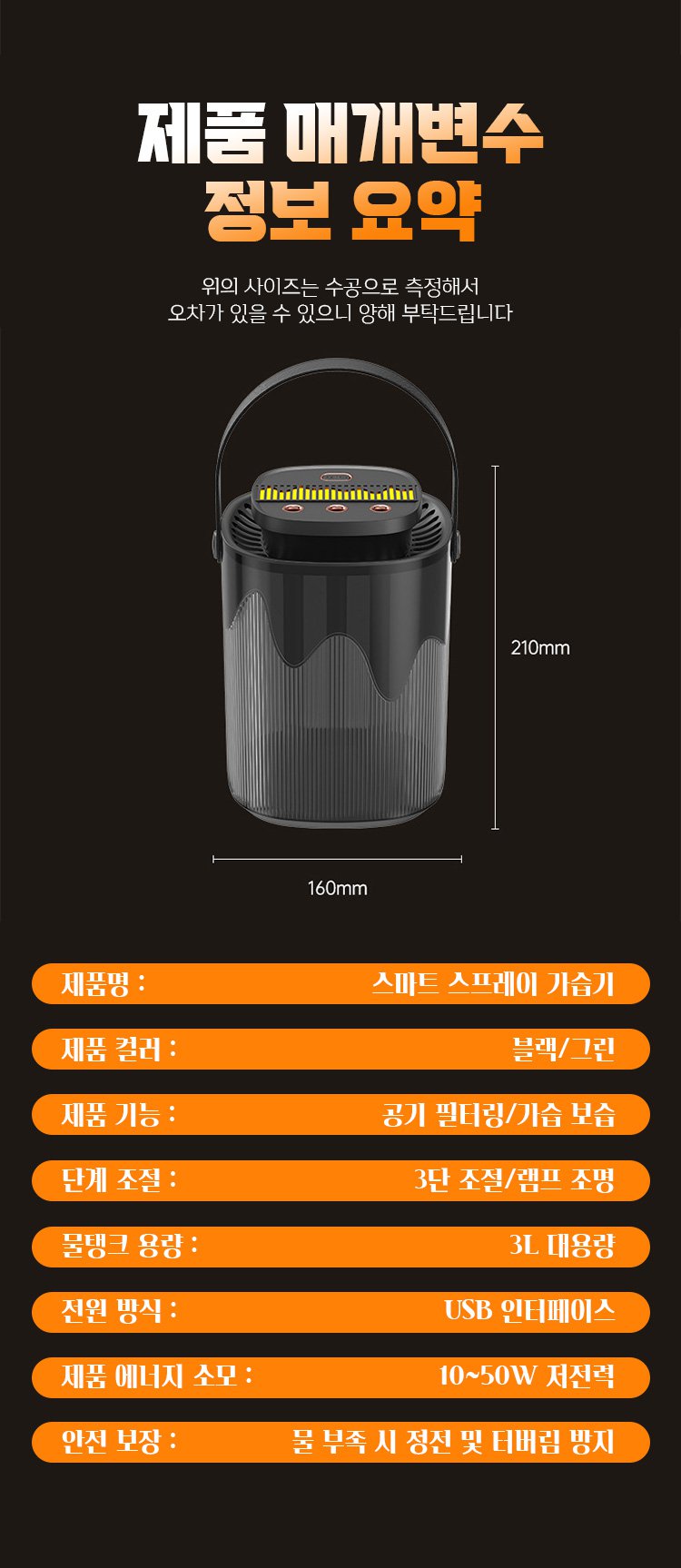 정화 및 살균 스마트 스프레이 가습기 전면 모습